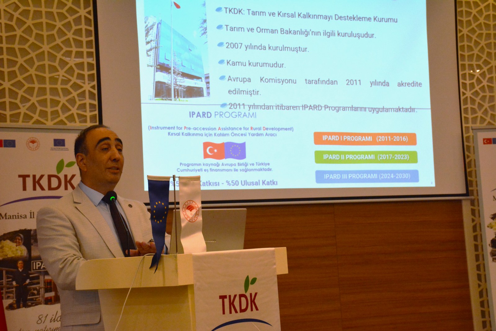 TKDK Manisa İl Koordinatörü Murat Akın tarafından yapılan sunumda, katılımcılar tarımsal işletmelerin fiziki varlıklarına yönelik yatırımlar ile tarım ve hayvancılık ürünlerinin işlenmesi ve pazarlanmasına ilişkin fiziki varlıklara yönelik yatırımlar başlıkları altında detaylı olarak bilgilendirildi.