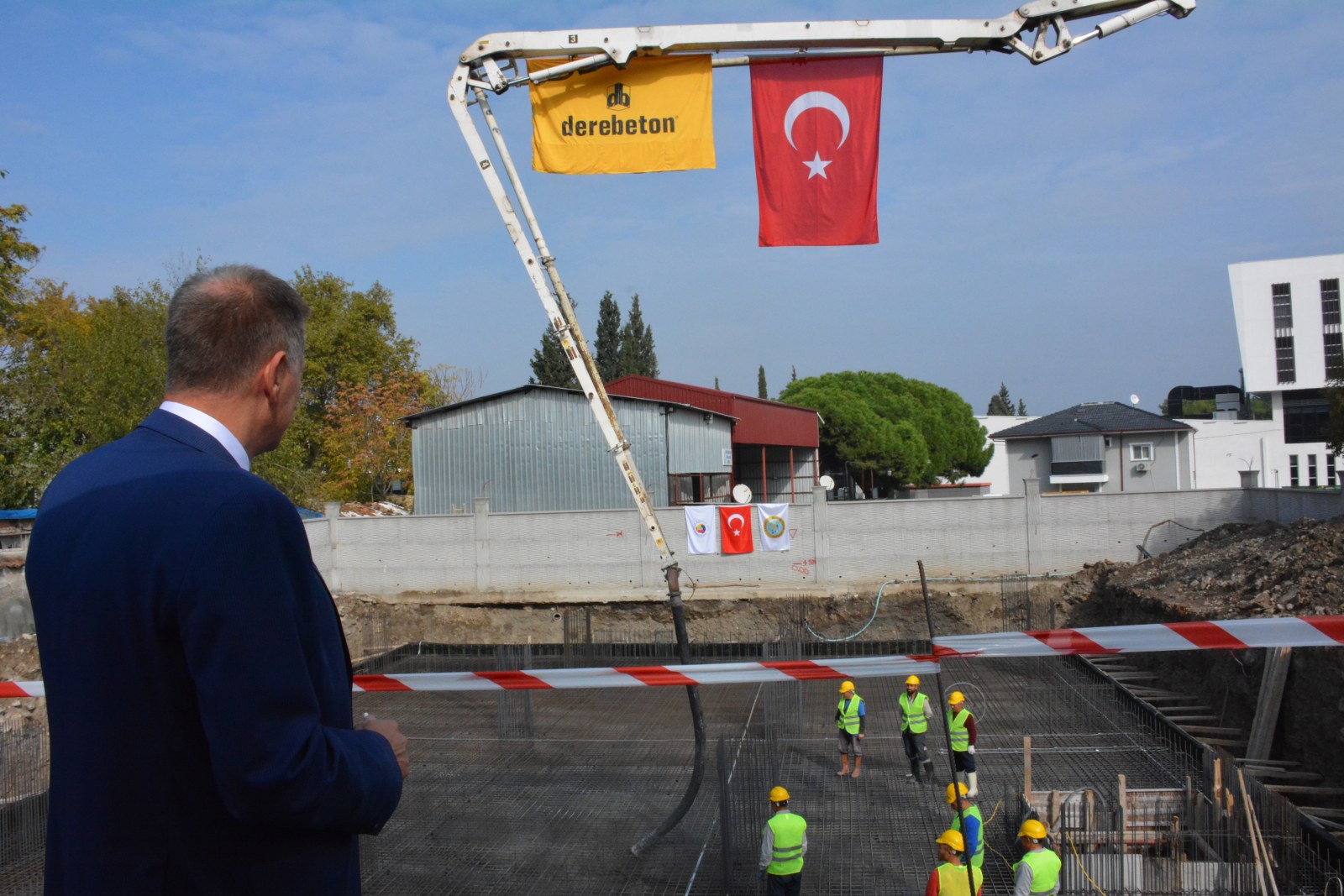 Tören, Hatuniye Cami İmam Hatibi Hayrettin Çoban tarafından yapılan dualar eşliğinde kurban kesimiyle devam etti. Ardından Başkan Özkasap ve beraberindekiler, butona basarak yeni hizmet binasının temelini attı. Temelin içine, hayırlı bir başlangıcı simgeleyen nazar boncuğu da atıldı.