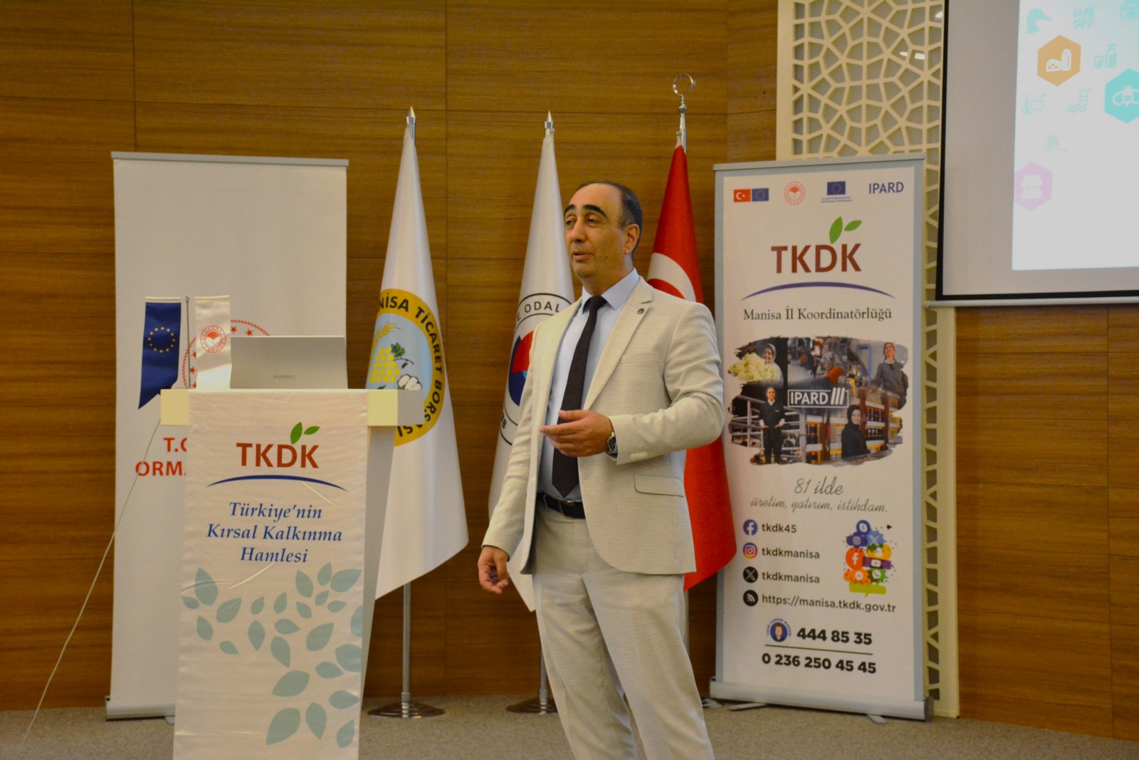 TKDK Manisa İl Koordinatörü Murat Akın tarafından yapılan sunumda, katılımcılar tarımsal işletmelerin fiziki varlıklarına yönelik yatırımlar ile tarım ve hayvancılık ürünlerinin işlenmesi ve pazarlanmasına ilişkin fiziki varlıklara yönelik yatırımlar başlıkları altında detaylı olarak bilgilendirildi.