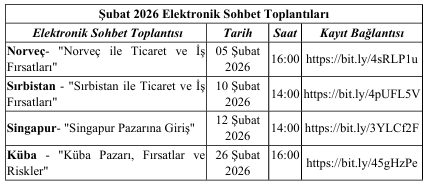 Şubat ayı kapsamında gerçekleştirilecek e-sohbet toplantıları ve katılım linkleri aşağıda yer almaktadır: