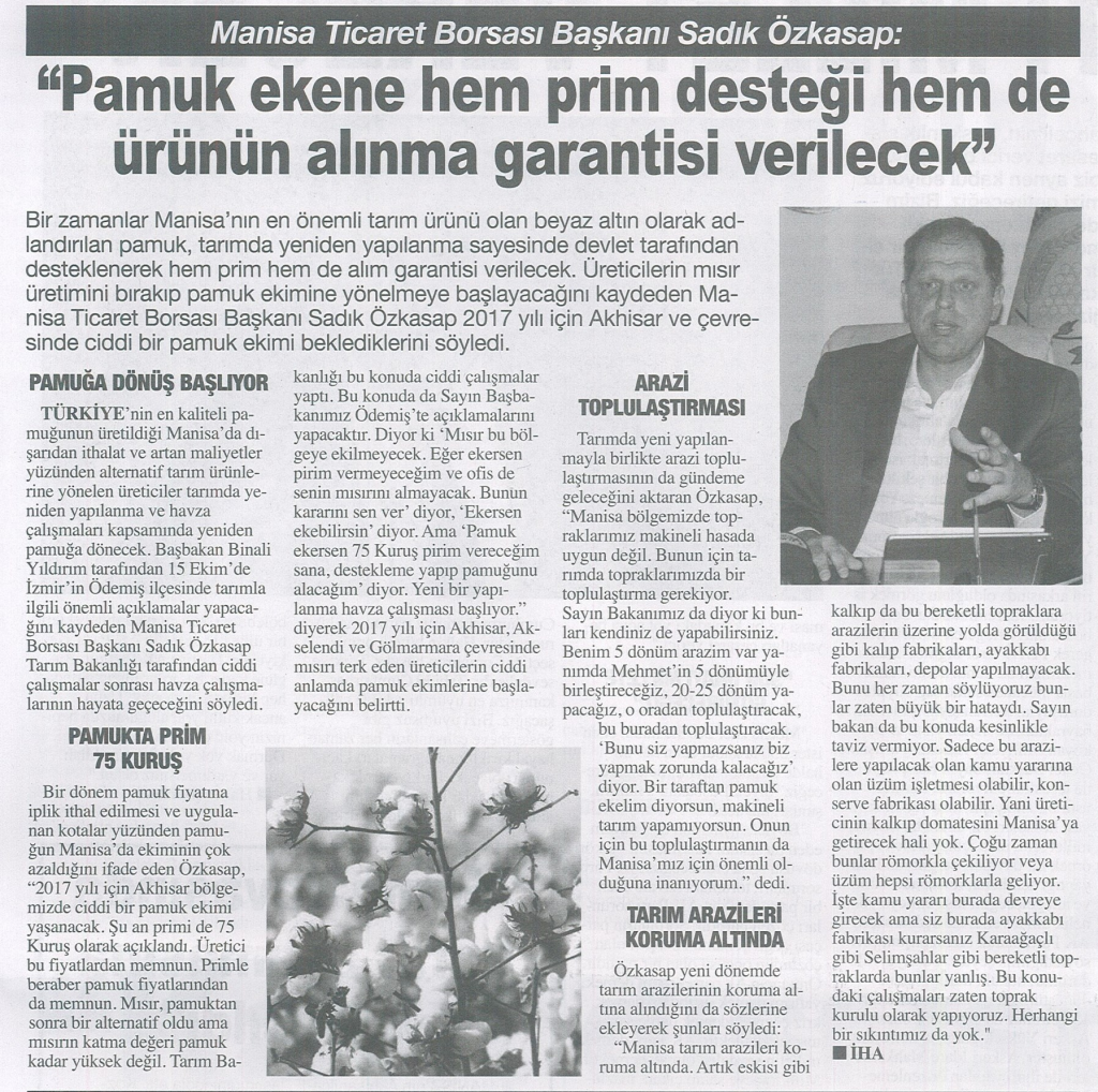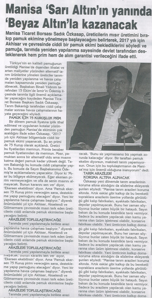 BAŞKANIMIZIN PAMUK İLE İLGİLİ YAPMIŞ OLDUĞU BASIN AÇIKLAMASI - 13.10.2016