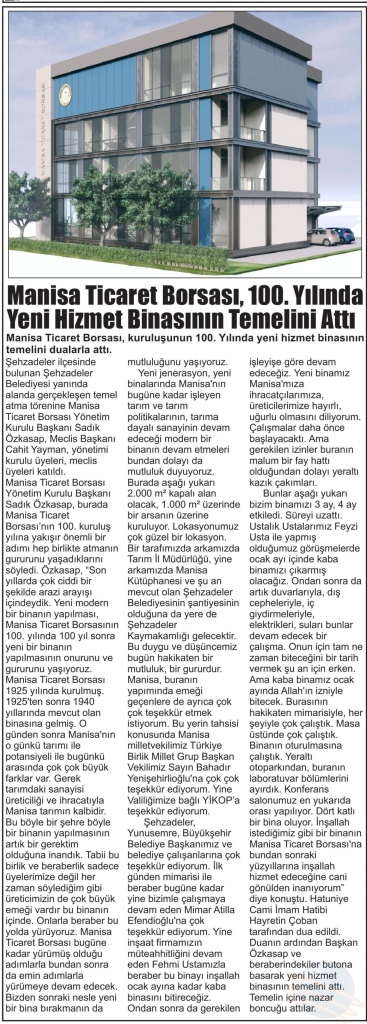 BASINDA MANİSA TİCARET BORSASI