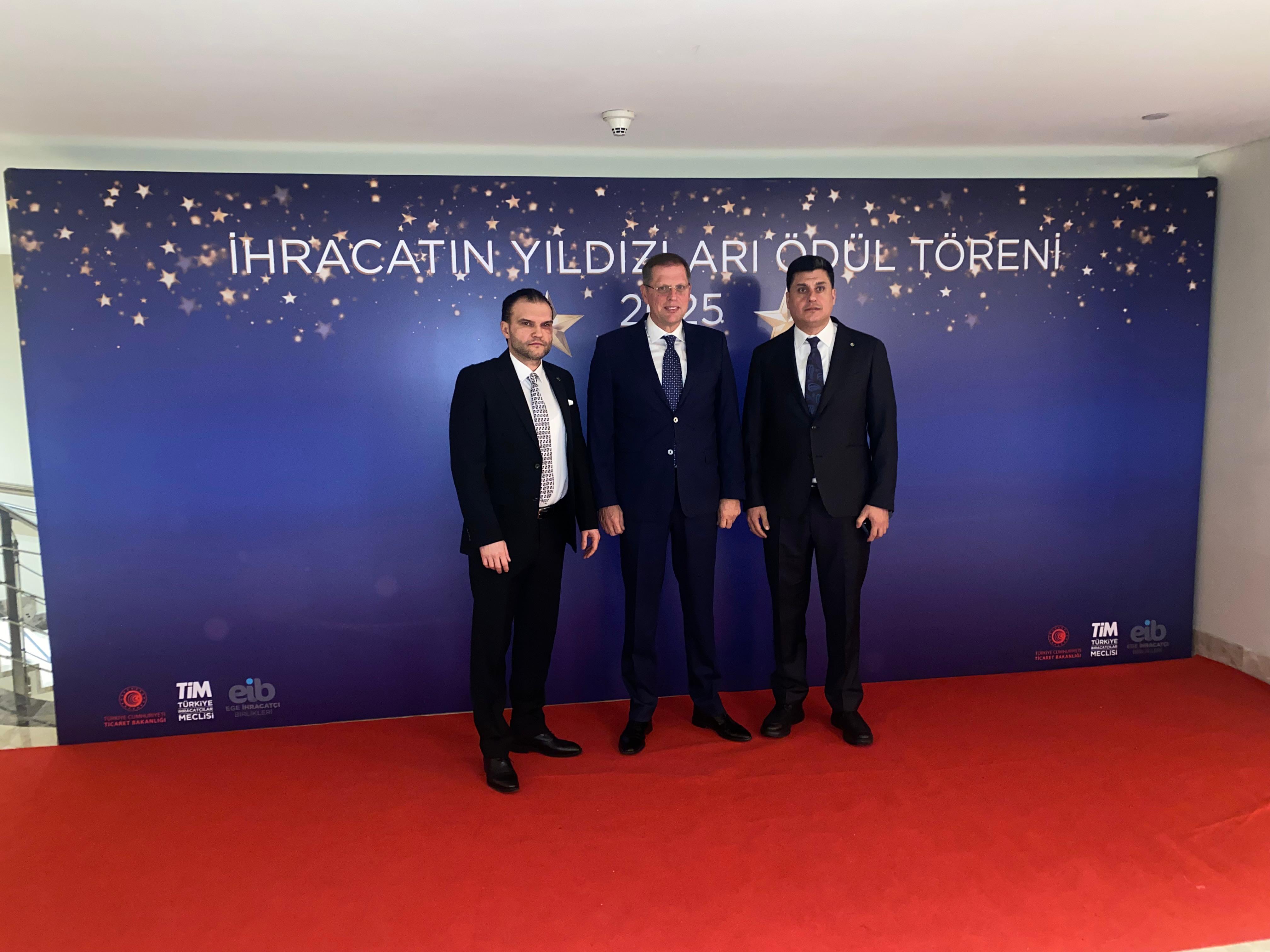 Manisa Ticaret Borsası Yönetim Kurulu Başkanı Sadık Özkasap ve Meclis Üyesi Kenan Unat İhracatın Yıldızları 2025 Ödül Töreni ve Gala Gecesi’ne katıldım sağlayarak ödül alan üyelerimizi yalnız bırakmadılar.